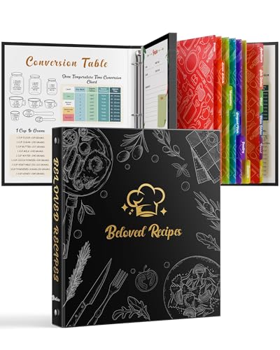 This Recipe Binder Kit is the finest gift in our extensive catalog. We've taken great care to create an instant heirloom—a sturdy beautiful timeless volume of family history and memories. Fill it with your recipes to create a wedding present or holiday gift that will be used admired and remembered for decades. We've built this kit around our celebrated floral recipe cards. We use sturdy acid-free cardstock because we know these cards will be used in busy kitchens—sometimes by young helpers. The included plastic sleeves display your recipes in top and bottom pairings. We sourced quality plastic to resist cracking and yellowing so your recipes stay protected down through the years. For larger recipes and magazine clippings we've also included five plastic sleeves without the top-and-bottom divider. Six organizing dividers help segment the recipes and make meal planning easier. Each set includes Appetizers Soups & Salads Entrees Beverages Desserts and