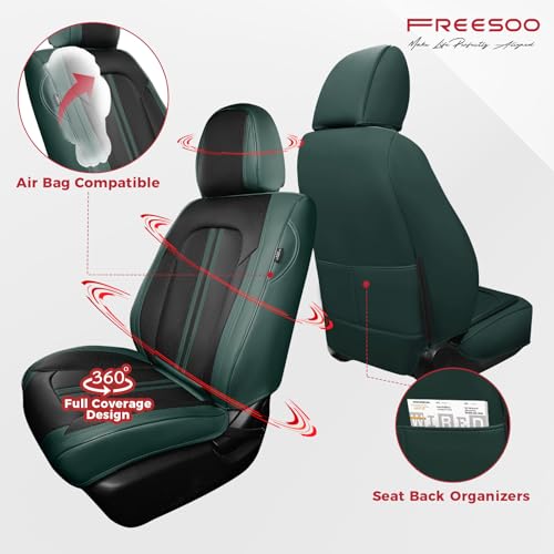 FREESOO Leather Car Seat Covers Full Set Green Black Waterpr...
