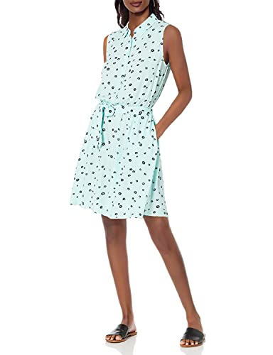 Amazon Essentials Women's Sleeveless Woven Shirt Dress Aqua Blue Poppy Large