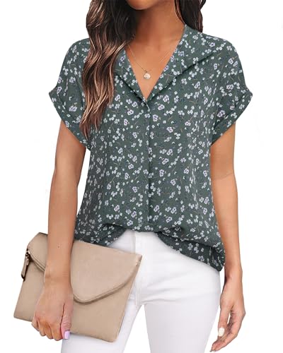 SAMPEEL Womens Summer Tops Ruched Cap Short Sleeve Shirts Ro...