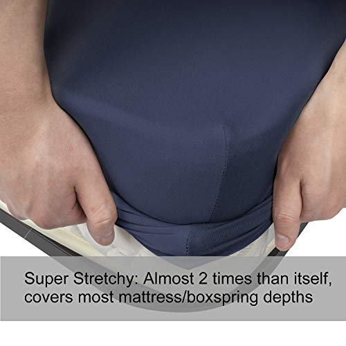 Twin Size Fitted Sheet Only - 4-Way Stretch Knit Snug Fit Wrinkle Free & Stay in Place No More Slipping Off for Mattress Soft & Comfortable - Navy Blue Twin Price in USA