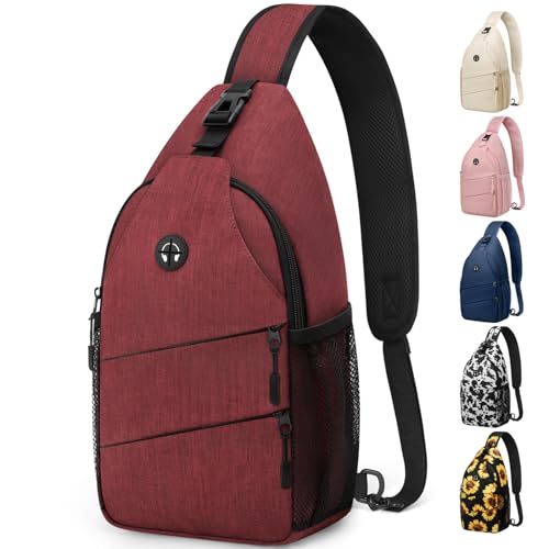 ZOMAKE Sling Bag for Women Men:Small Crossbody Sling Backpack - Mini Water Resistant Shoulder Bag Anti Thief Chest Bag Daypack for Travel Hiking Sports(Color Chrysanthemum)