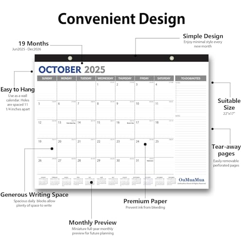 OuMuaMua Large Desk Calendar 2025-18 Months from Jan. 2025 t...