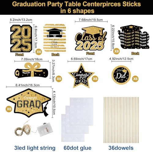 Graduation Decorations Class of 2024-36pcs Black and Gold Gr...