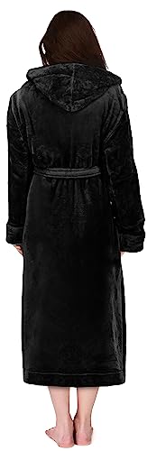 NY Threads Women's Fleece Hooded Bathrobe Plush Long Spa Robe Large Black Price in USA