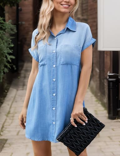 Zilcremo Women Denim Shirt Dresses Long Sleeve Distressed Jean Dress Button Down Casual Tunic Top ArmyGreen S Price in USA