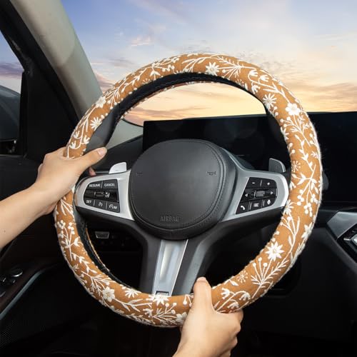BELINOUS Leather Steering Wheel Cover Lace Up Stitch On Wrap Universal Fit 13-20 inch Car Truck SUV Pickup Boat A Whole Piece of Cowhide DIY Stitch w/Needle Thread (Size M2 Beige) Price in USA