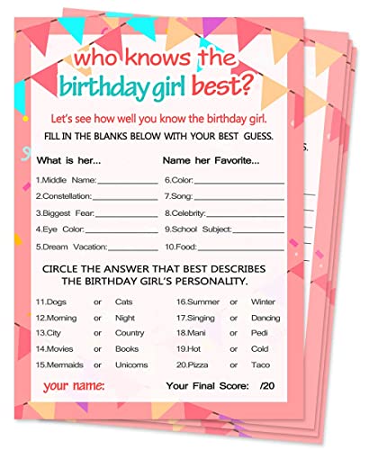 Who Knows The Birthday Girl Best Games - 20 Game Cards