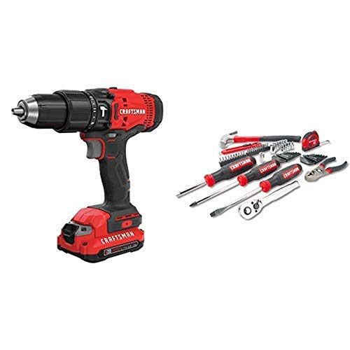 CRAFTSMAN V20 Cordless Hammer Drill Kit with Mechanics Tools...