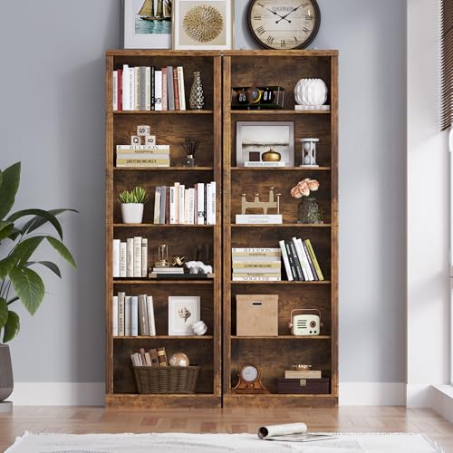Superjare Triple Wide 5-Tier Bookshelf Humanized Design: You can change the position of the board according to the size of the item and your need. Here you can DIY at will creating a space of your own style. Minimalist design: With simple texture and calm colors the retro book shelf may be an ideal choice to bright up your house or office! Bring you a cozy feeling! The appearance of shelf is chic and generous. A perfect decor for your room! Multi-functions: In addition to being a storage space this bookshelf can also be used as a home decoration.You can place models mementos potted plants or anything else you want to display. Feature DIY Available: You can freely move wooden boards according to your needs to place items of different heights. ADJUSTABLE PAD : Leg pads are adjustable to keep the balance of the book case. Stable “X” structure: The X-shaped metal brackets behind the display shelf aims to keep stable and prevent