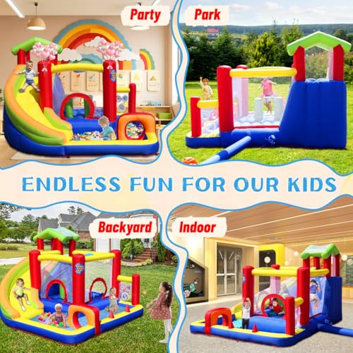 ACTION AIR Bounce House Inflatable Bounce House with Air Blower Bouncy Castle with Durable Sewn and Extra Thick Family Backyard Jump House Great Gift for Kids