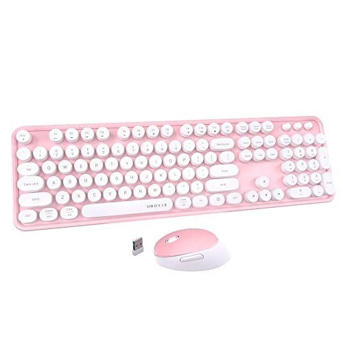 UBOTIE Colorful Computer Wireless Keyboard Mouse Combos Typewriter Flexible Keys Office Full-Sized Keyboard 2.4GHz Dropout-Free Connection and Optical Mouse (Pink-White) Price in USA