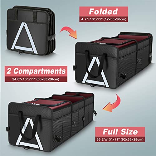 K KNODEL Sturdy Car Trunk Organizer with Premium Insulation Cooler Bag Heavy Duty Collapsible Trunk Storage Organizer for Car SUV Truck or Van (3 Compartments Red)