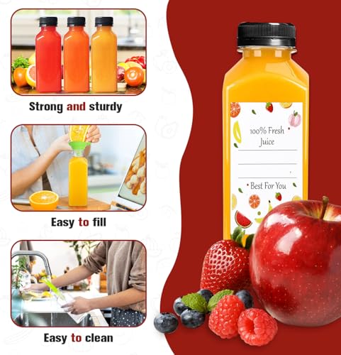 12 2 oz Clear Glass Bottles (60ml) with Lids & 3 Stainless Steel Funnels - Small Mini Boston Sample Bottles for Juice Ginger Shots Oils Whiskey Liquids - Travel Bottle with NO Leakage Design Cap Package Include: 2 oz Clear Glass Container Bottles with Lids (60ml) x 12 Stainless Steel Funnels x 3 Labels x 24 (2 Types)
