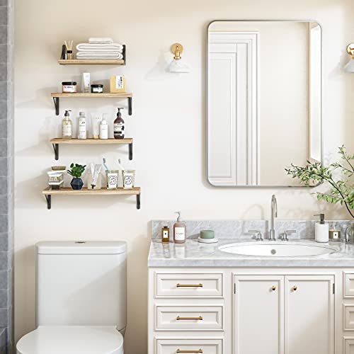 AMADA HOMEFURNISHING Floating Shelves Black Wall Shelves with Invisible Brackets for Bedroom Bathroom Living Room Kitchen Set of 3 - AMFS07