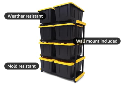 CX Black & Yellow® 4-Tier Heavy Duty Plastic Storage Shelving Unit 200lbs/shelf (55”H x 48”W x 20”D) for Indoor/Outdoor Organization Modular Rack Price in USA