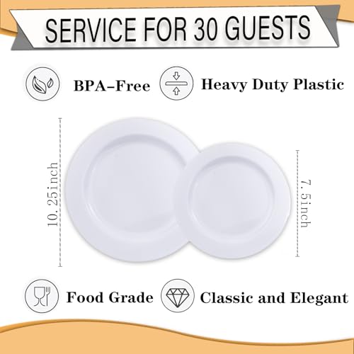 FLOWERCAT 60PCS White Plastic Plates - Heavy Duty White Disp...