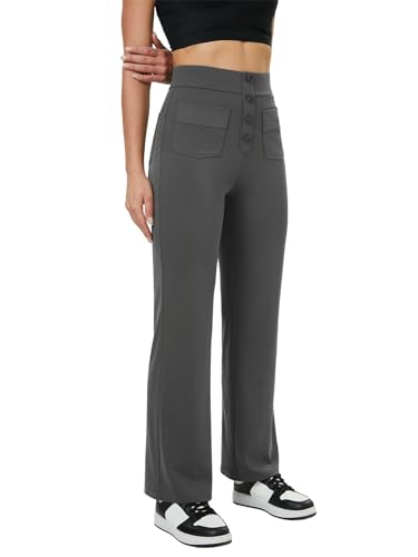 keriffe Women's Straight Leg Pants High Waisted Button Stret...