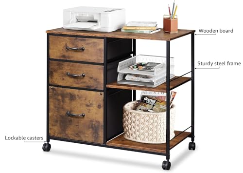 DEVAISE 3 Drawer Mobile File Cabinet Rolling Printer Stand w...
