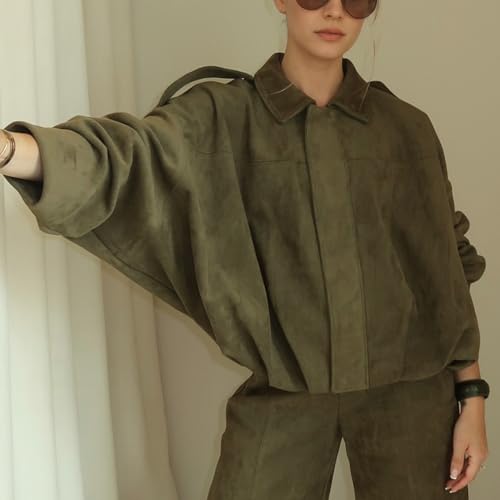 Talakeno Womens Faux Suede Bomber Jacket Casual Lightweight ...