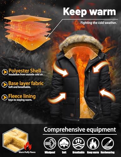 TACVASEN Men's Winter Jacket with Hood Water Repellent Windp...