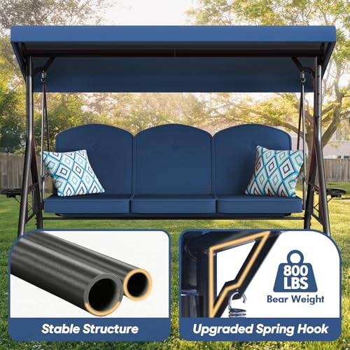 ZZW 3 Seat Outdoor Porch Patio Swing 800lbs 2-in-1 Patio Swi...