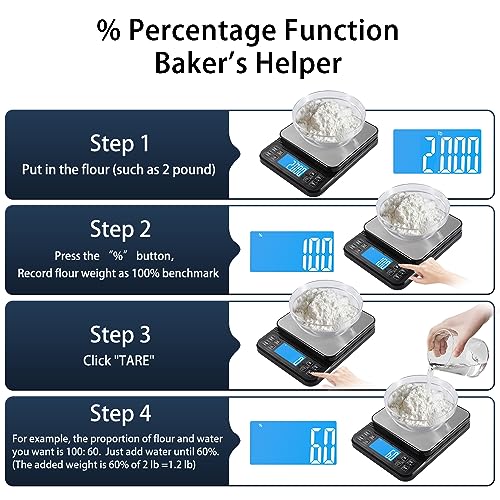 Etekcity Food Scale 0.1g Digital Kitchen Scale with Detachable Bowl Precise Weight Grams and Ounces for Baking Cooking Meal Prep 11lb/5 Units Large LCD Display Stainless Steel