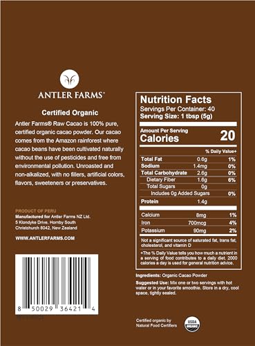Antler Farms - 100% Pure Organic Raw Cacao Powder 40 Serving...