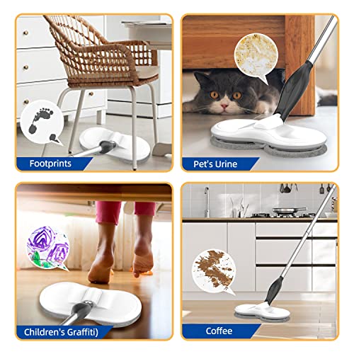 VMAI Cordless Electric Mop Do you feel exhausted in mopping floor with the normal mop? Do you feel knee pain when you need to clean the floor under the bed? Are you struggling in the not enough cord distance with some cord electric mop? VMAI Cordless Electric Mop will definitely solve all your difficulties. Go wherever you want - As a newest edition in 2020 VMAI Cord-Free Electric Mop let you clean the whole house without space restricted. It is effortless to take it upstairs and downstairs with lightweight body. Use it for the whole room - Compared to other electric mops detachable 2550mAh battery of VMAI cordless mop provides a longer running time of 40-60 mins after only 2.5-3hrs fast charging easily clean up to 2150 sq.ftarea. Clean every corner at home - The mop head allows 180° rotated from left to right 90°rotated for standing and facilitating mopping. It’s easier to reach beneath and around furniture. Flexib