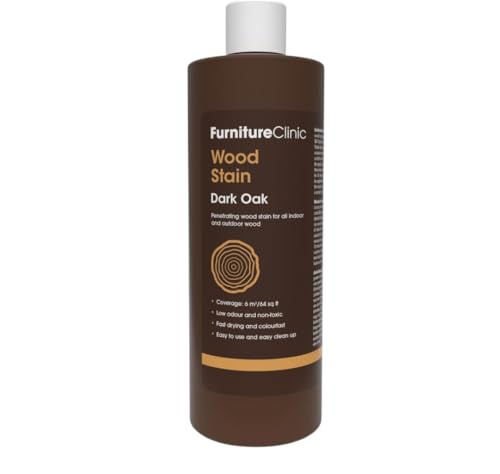 Furniture Clinic Wood Stain | 17oz / 500ml | Multiple Finishes | Fast Drying | Indoor and Outdoor Furniture and More | Water Based Low Odor Non-Toxic | Polyurethane Finish & Sealer | Dark Oak Price in USA