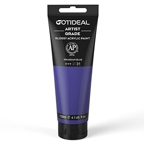 GOTIDEAL Acrylic Paint Prussian Blue Tubes(120ml 4.1 oz) Non Toxic Non Fading Rich Pigments for Painters Adults & Kids Ideal for Canvas Wood Clay Fabric Ceramic Craft Supplies (Prussian Blue)