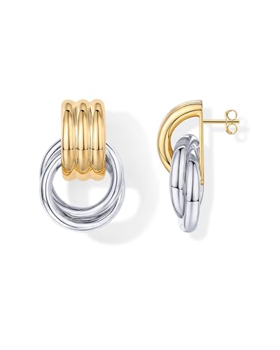 PAVOI 14K Gold Plated Two-Toned Trendy Chunky Geometric Dang...