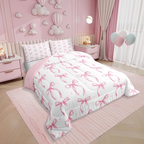 Erosebridal Cute Pink Bow Twin Bedding Set for Girls Ribbon ...