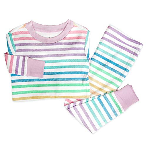 HonestBaby 2-Piece Pajamas Sleepwear PJs 100% Organic Cotton for Infant Baby and Toddler Girls Unisex Rainbow Stripe 3T Price in USA