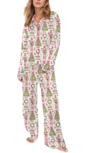 Satin Silk Christmas Pajamas Set for Women Cute Santa Claus ...