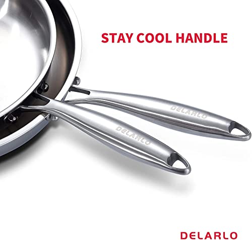 DELARLO Tri-Ply Stainless Steel Pan 12 inch Frying Pan with ...