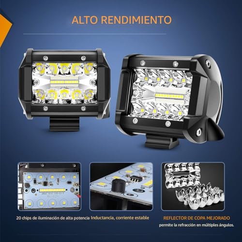 4\" 60W Triple Row Spot/Flood LED Work Light Pods | 12FT Wir...