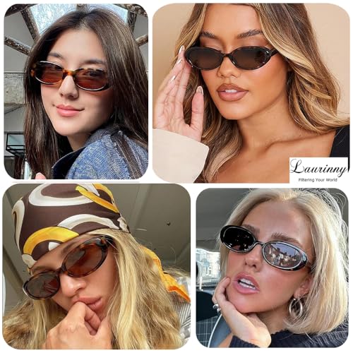 Laurinny Oval Sunglasses for Women Men Trendy 90s Retro Smal...