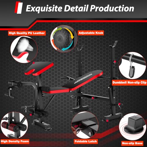YOLEO 6 in 1 Weight Bench Set for Home Gym Adjustable & Fold...