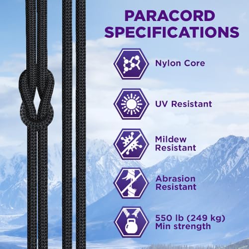 TECEUM Paracord Type III 550 Black –100 ft – 4mm – Tactical ...