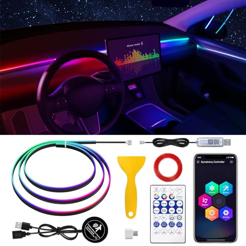 Xprite RGB LED Lights Interior 4 Pcs 72 LED Waterproof Strip Light for Car with Remote & APP Control,Suitable for DIY Music Sync Mode Universal for Vehicle Internal SUV Truck, DC 12V/USB Cable