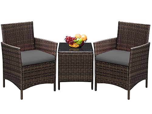 Greesum 3 Pieces Patio Furniture Sets Outdoor PE Rattan Wicker Chairs with Soft Cushion and Glass Coffee Table for Garden Backyard Porch Poolside Brown and Gray Price in USA
