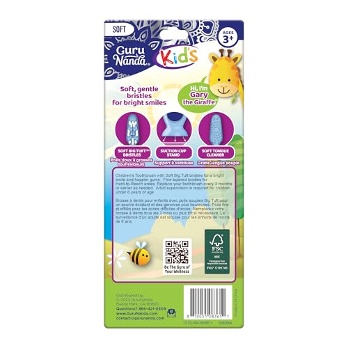 GuruNanda Kids Toothbrush with Suction Cup & Fun Animal Desi...