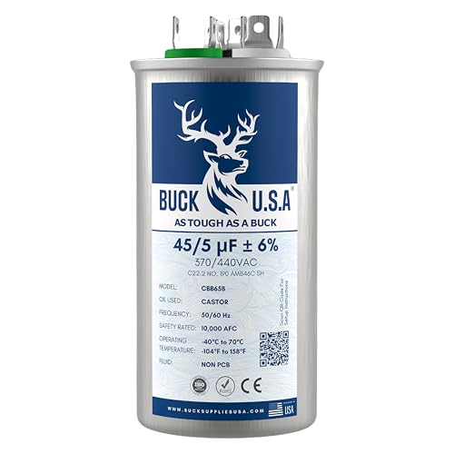 BOJACK 45+5uF 45/5MFD ±6% 370V CBB65 Dual Run Circular Start Capacitor for AC Motor Run or Fan Start or Condenser Straight Price in USA