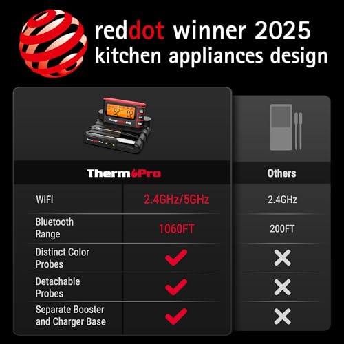 ThermoPro Wireless Meat Thermometer of 650FT for Smoker Oven Bluetooth Grill Thermometer with Dual Probes Smart Rechargeable BBQ Thermometer for Cooking Turkey Fish Beef Price in USA