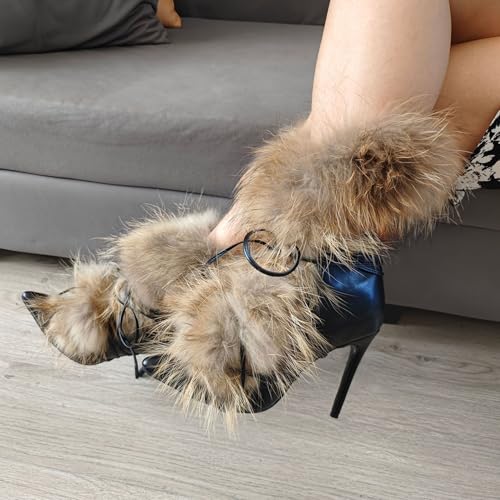 Maiosfy Furry Pointed Stiletto Heels with Straps Large Size ...