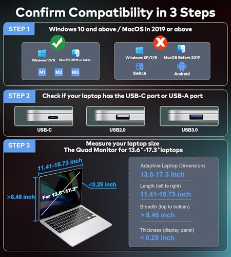 FOPO 14"""" Laptop Screen Extender Monitor Portable Quad Mon...