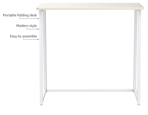 Meet WOHOMO new small folding computer desk! Once use you will love the compact and stow-away design. When not in use just fold away and tuck into any compact area. Additional hanging hooks offer extra storage options to attach every conceivable gadget cleaning up the look on your entire workstation and keeping you organized all the time. Simple design make the most of your space easy to fit snugly in a corner or narrow space to maximize your limited space. It is much Easier to set up the foldable computer desk than take it out from box. Only 1 step just unfold the frame and snap the desktop on installation complete. Specifications: Expanded size: 31.5 x 15.75 x 29.52 inches Folding size: 31.5x2.55x29.72 inches Panel thickness: 2 cm Package weight: 18 lbs Maximum load bearing: 200 lbs Color: Oak Desktop + White Frame What's included: 1 x Foldable Desk 1 x Assembly Instruction