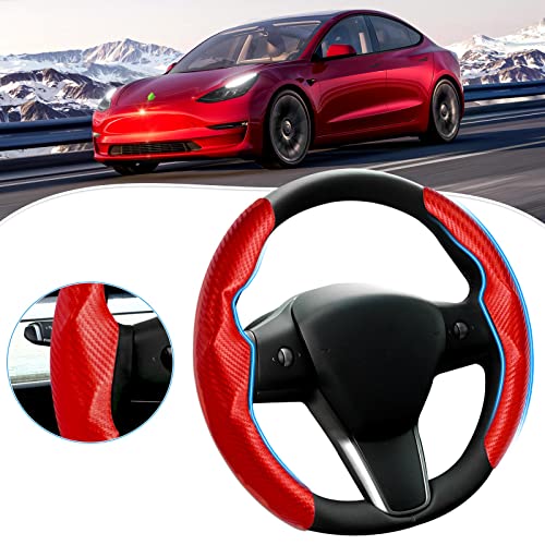 Xizopucy Red Steering Wheel Cover Leather Car Steering Wheel Cover Crystal Rhinestones Anti-Slip Soft Accessories for Women and Girl Universal Fit 14.5-15 Inch