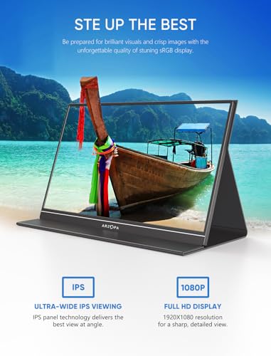 ARZOPA Portable Monitor 15.6'' 1080P FHD Laptop Monitor USB ...